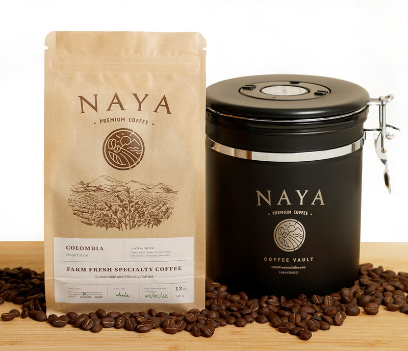 When properly stored, roasted coffee retains its flavor profile for 14 to 21 days. After unsealing a bag of coffee, beans should be kept in an sealed, dark container. Freshly roasted coffee also emits CO2, which should be vented away. The NAYA Vault valve releases CO2 but seals out oxygen. With the calendar date wheel, you can track roast- or expiration dates, alerting you of potentially stale coffee.